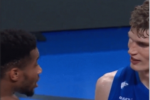 赛后,两队的当家球星字母哥与马尔卡宁互换球衣。