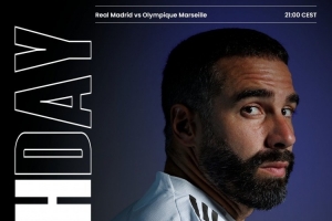 赛前,皇马官方晒出比赛海报,卡瓦哈尔单人出镜,海报上方为对阵双方以及开球时间,下方为比赛场地以及赛事类型。