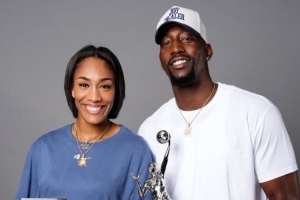 热火官方晒出阿德巴约和阿贾-威尔逊的合照祝贺阿贾夺冠,这张照片是阿贾当选今年的MVP时拍摄的。