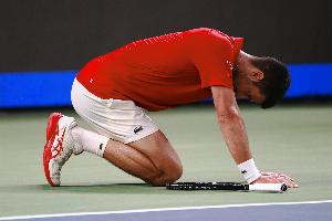 本场比赛德约受伤病影响多次中断比赛,在第2盘中,德约科维奇在多拍鏖战中拿下一分,随即累得跪在地上缓解疲劳。尽管伤病和体能已经严重影响到了状态,德约仍然坚持打完了本场比赛。