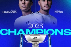 海利厄瓦拉/帕滕2-0萨利斯布里/斯库普斯基,夺得ATP年终男双冠军