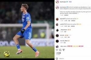 赫伊森社媒:平局并非我们想要的结果 很荣幸打进皇马处子球