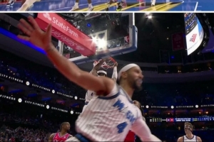 对此,ESPN评论道:“萨格斯意欲复刻韦德和詹姆斯的经典空接😂。”