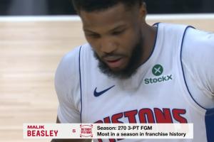 截止第三节比赛,比斯利投进4个三分。本赛季累计投进270个三分,创造队史单赛季三分球命中纪录。