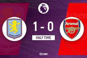 半场-阿森纳暂0-1维拉 卡什凌空破门沃特金斯失良机 埃泽进球被吹