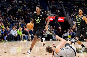 2025届新秀第一个三双诞生,它来自鹈鹕内线德里克·奎因。
