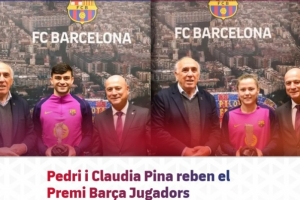 体育资讯12月18日讯 巴萨佩德里和克劳迪娅·皮娜获得了巴塞罗那球员奖,这是俱乐部球员协会每年颁发的奖项,旨在表彰球员在该赛季展现出的公平竞赛精神。协会主席胡安·曼努埃尔·阿森西和俱乐部董事何塞普·伊格纳西·马西亚在体育城举行的仪式上负责向球员颁奖。