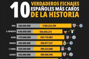 计算通胀后西班牙球员转会费排行: