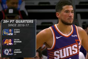 险胜一次!近9年单节20+:库里30次居首 布克&哈登29次同列次席!