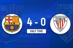 半场-巴萨暂4-0毕巴 费尔明2传1射拉菲尼亚、巴德吉传射西蒙送礼