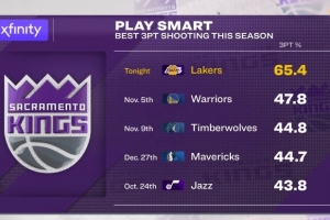 国王今天三分命中率65.4%赛季最高 此前最高的是对阵勇士的47.8%