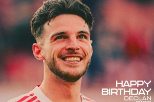 体育资讯1月14日讯 今天是阿森纳中场赖斯的27岁生日,阿森纳官方为他庆生。