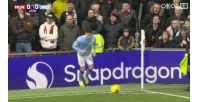 第36分钟,曼城角球机会,阿莱恩头球攻门,达洛特解围与拉门斯撞到一起。