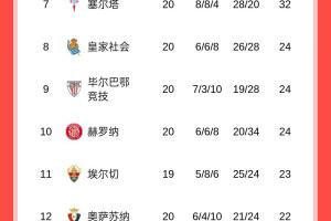 踩刹车!西甲积分榜:巴萨9连胜止步,领先第二皇马1分