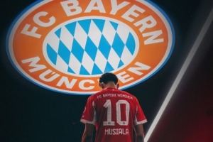 体育资讯1月21日讯 穆西亚拉更新社媒动态,晒出与拜仁队徽的合照。