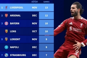 体育资讯1月22日讯 在本轮欧冠,利物浦3-0完胜马赛,近13场各项赛事保持不败。德转盘点了目前五大联赛球队各项赛事现存最长不败场次榜,具体如下: