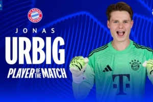 6次扑救!官方:乌尔比希当选拜仁2-1埃因霍温全场最佳球员