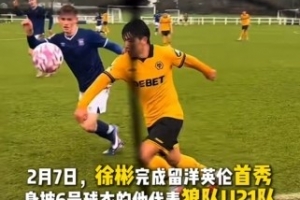 体育资讯2月8日讯 在徐彬代表狼队U21完成本次留洋的首秀后,足球中国官方发文向徐彬送上祝贺和鼓励。
