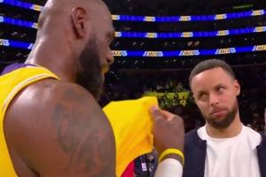 GIF-库里&詹姆斯赛后拥抱交谈