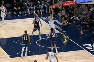 GIF-太帅啦!杨瀚森双手补扣大力挂筐!