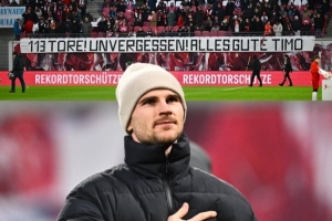 莱比锡球迷拉横幅告别维尔纳:113粒进球令人难忘 祝你一切顺利!