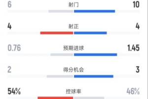 控球率54%-46%
