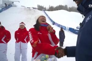 赛后颁奖仪式上,徐梦桃笑着向颁奖嘉宾调侃:这是我的第一枚奥运会铜牌。