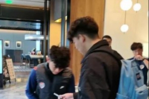 U17国脚邝兆镭已经官宣加盟中超青岛海牛,2月22日,邝兆镭在上海参加与球队会合后的第二堂训练课。今天,从博主“彩虹的微笑”发布的视频来看,出发训练前,邝兆镭在酒店大堂为球迷签名。