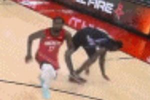 GIF-伊森反击的时候撞到了小文斯·威廉姆斯,小文斯·威廉姆斯被两个工作人员夹着抬回更衣室