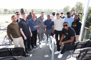洛杉矶湖人队在里维埃拉乡村俱乐部度过了一个完美的日子,球员和教练们聚集在18号果岭上方的包厢中。原计划周六进行训练的湖人队取消了训练,改为参加在太平洋帕利塞德举行的年度PGA赛事——创世纪邀请赛。