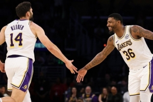 湖人官方赢球海报封面:斯玛特&克莱伯击掌 前者贡献9分3板3助5断