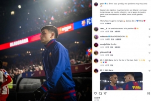 本场比赛佩德里首发表现不俗,赛后他也在个人社媒晒出本场照片,配文鼓励球队写道:“我们倾尽全力,距离目标仅一步之遥 🙏 本赛季我们还有两个非常重要的冠军可以争取,我毫不怀疑凭借我们的努力以及球迷们的支持,我们将迎来许多精彩的夜晚。现在是时候恢复体力并保持高昂的斗志!”
