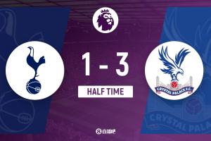 半场-热刺1-3水晶宫 范德芬直红萨尔点射+双响+进球被吹