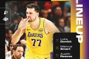 詹姆斯艾顿缺阵!湖人首发:东契奇、斯玛特、里夫斯、八村、海斯