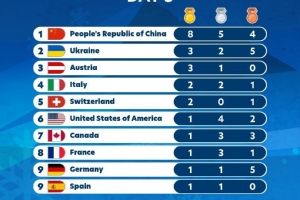 奖牌榜第二至第五的国家分别为:乌克兰、奥地利、意大利、瑞士。
