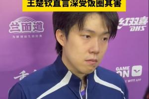 体育资讯03月11日讯 WTT重庆冠军赛男单1/16决赛,王楚钦3-0战胜对手晋级16强,赛后接受采访时,王楚钦被问饭圈相关的话题。